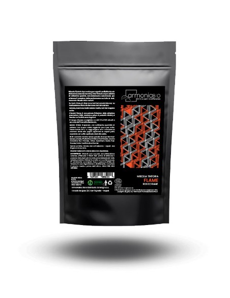 Henné Flame ArmoniaBio es una coloración vegetal para el cabello 100% natural y ecológica, certificada Ecocert Cosmos y Vegan OK. Un polvo ultrafino a base de henna y hierbas ayurvédicas que proporciona un tono cobrizo cálido e intenso, cubriendo eficazmente las canas.